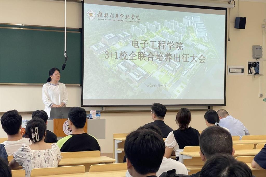 6月24日下午,电子工程学院在D211教室开展 “3+1”校企联合培养出征大会。学院院长韩桂明、党总支书记梁自珍、院长助理王涛、团委书记朱济亨、2021级辅导员以及2021级全体实习生参会,会议由团委书记朱济亨主持。