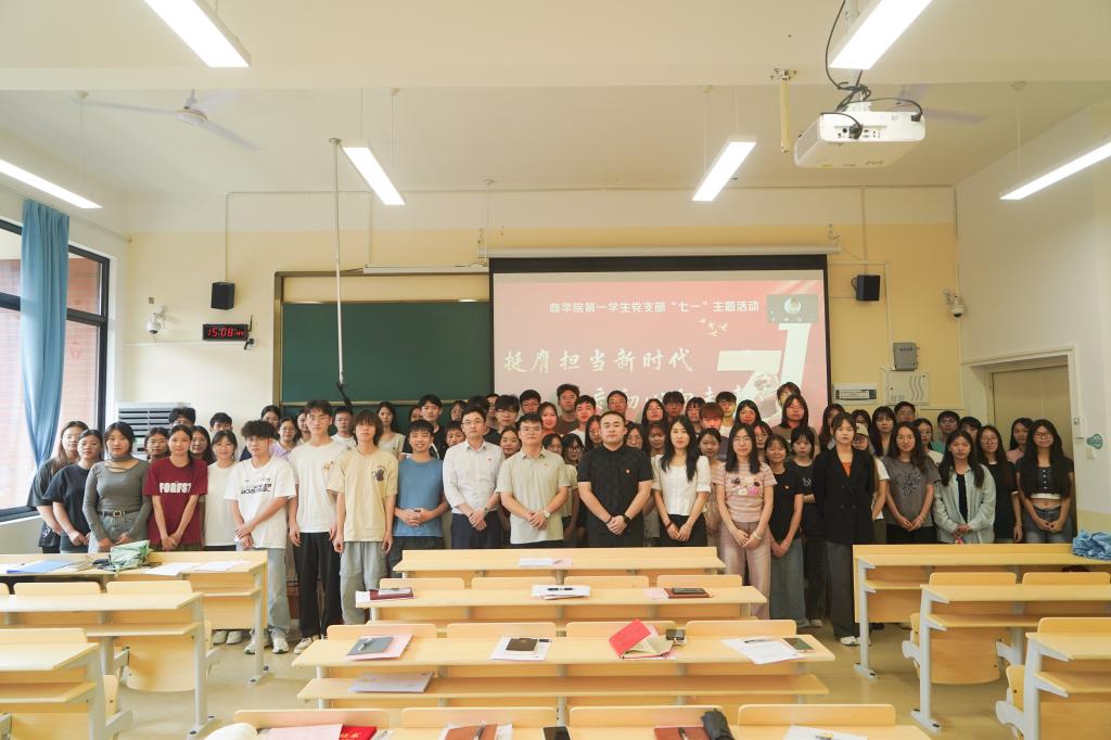 为庆祝中国共产党成立103周年,引导广大党员深入学习贯彻习近平新时代中国特色社会主义思想。近日,商学院党委开展“挺膺担当新时代,不忘初心向未来”七一主题活动。商学院党委书记许奇、商学院第一学生党支部全体党员以及学院学生代表参加此次主题活动。会议由第一学生党支部书记袁喆主持。