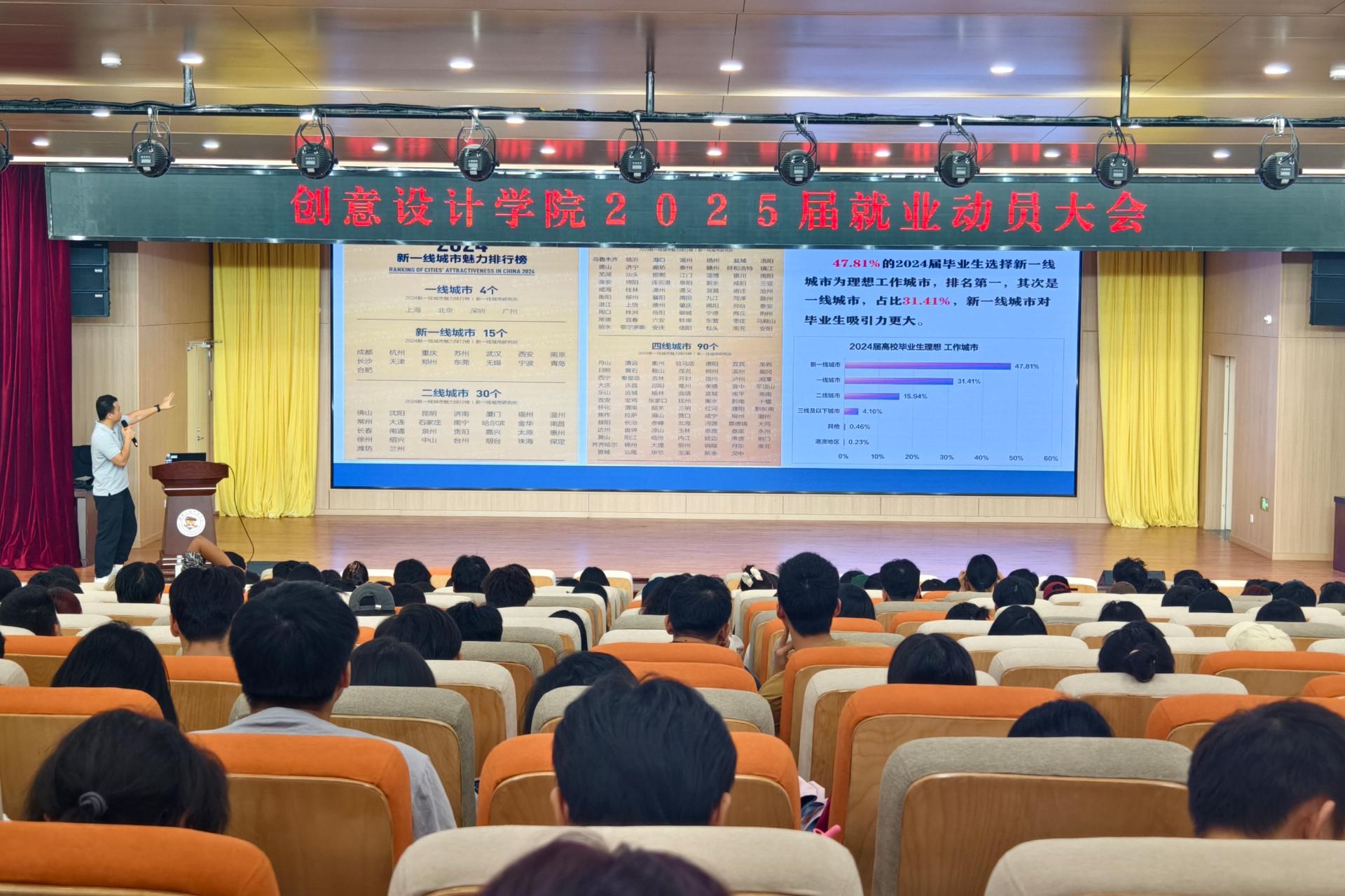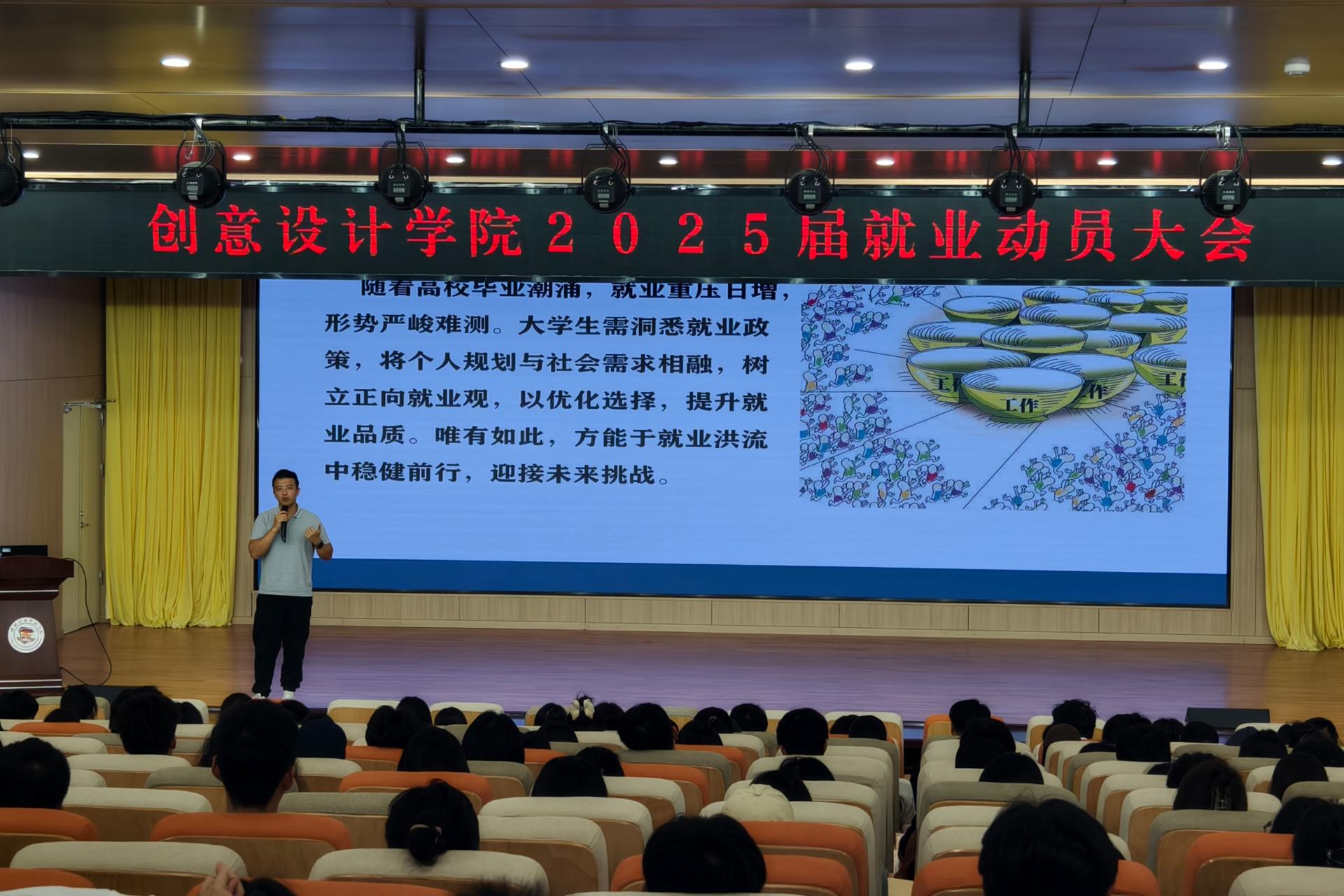 为全面贯彻落实关于高校毕业生就业工作的决策部署,推动毕业生高质量就业。9月26日,创意设计学院在F107报告厅开展2025届毕业生就业动员大会,帮助2025届设计学子们了解就业形势。此次动员大会由学院党总支书记范恒祯主持。