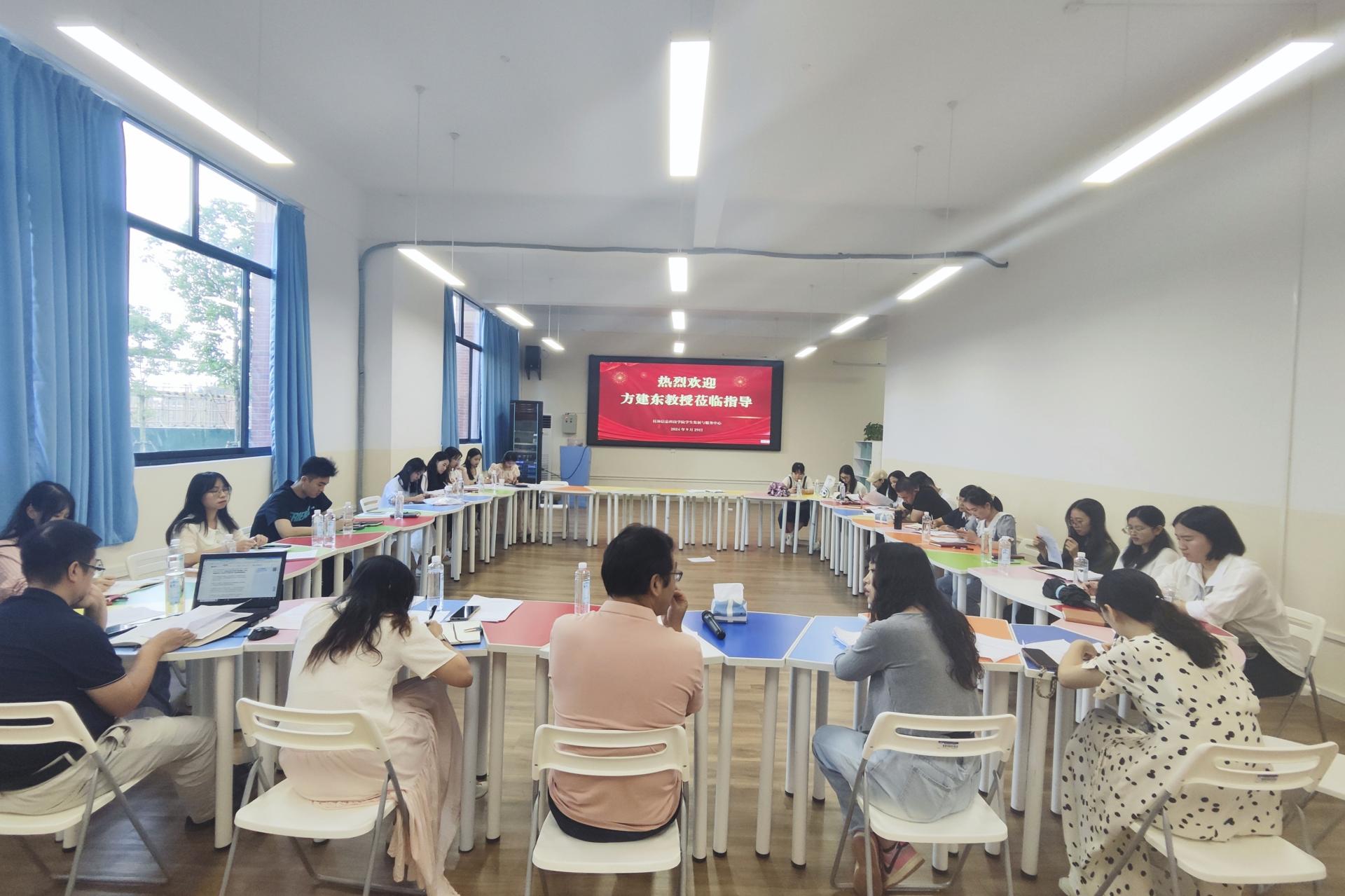 为促进教师的专业能力成长,做好学生心理健康服务工作。近日,我校心理中心组织2024年秋季学期第一期线下心理咨询案例督导会。本次会议特邀嘉宾是来自广西师范大学的方建东教授,方教授是资深的心理咨询师,在心理咨询伦理、心理危机干预、学校心理健康教育领域有丰富的经验和深入的研究。