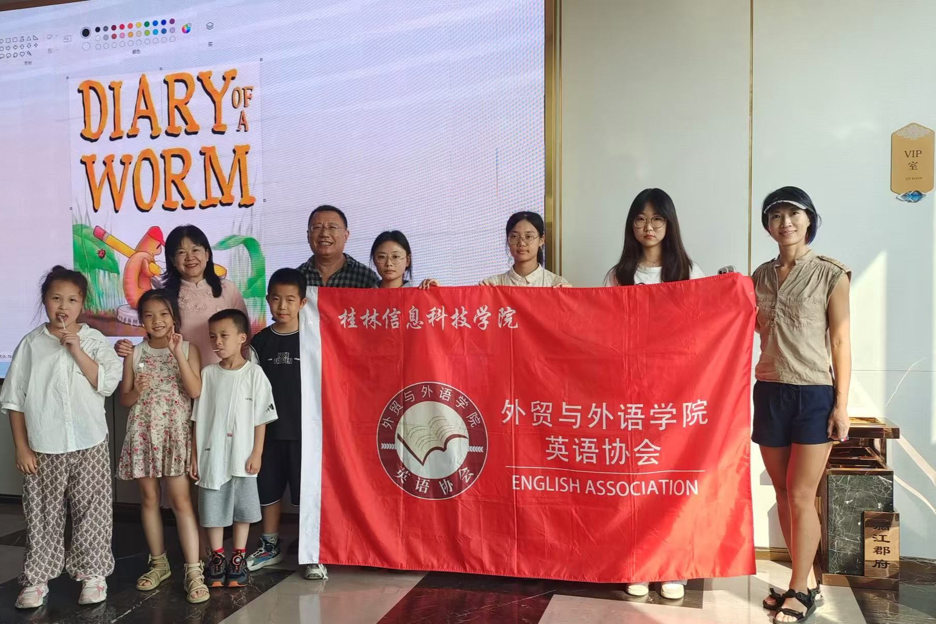 近日,兴进服务集团联合广西桂林图书馆漓心文化空间、桂林信息科技学院、五通社区党群服务中心、广西心程教育科技有限公司于每周六在桂林市漓江郡府举办桂林市公益英语角系列活动,我校外贸与外语学院英语协会组织学生作为长期志愿者与桂林市市民共同开展英语交流学习,结合专业特色,践行当代大学生的社会责任。