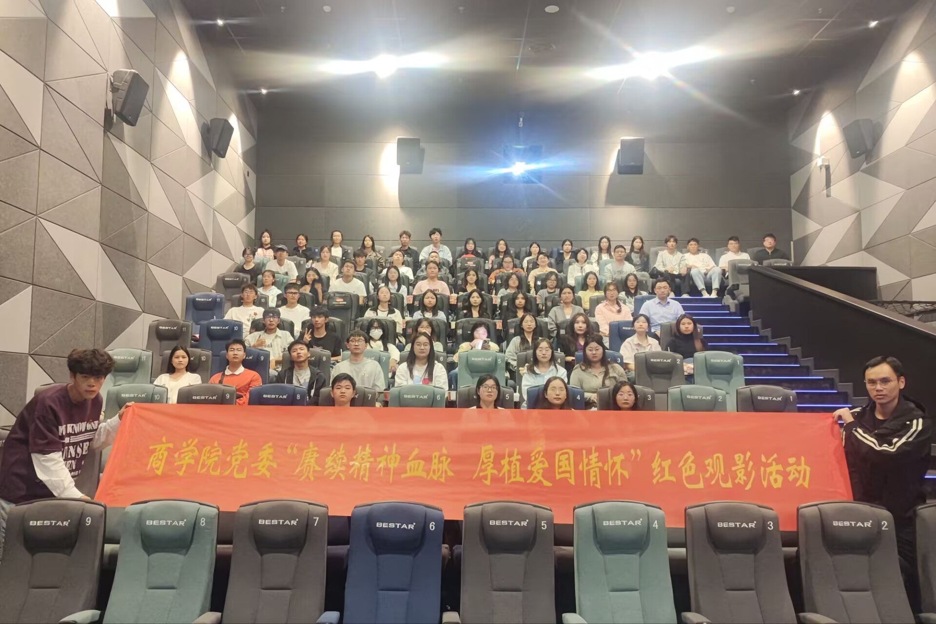 为庆祝中华人民共和国成立75周年,弘扬爱国主义精神,涵养家国情怀,增强师生的民族自豪感和国家荣誉感,11月1日,商学院党委组织师生党员开展“赓续精神血脉 厚植爱国情怀”红色观影活动,集体观看爱国主义影片《志愿军:存亡之战》。
