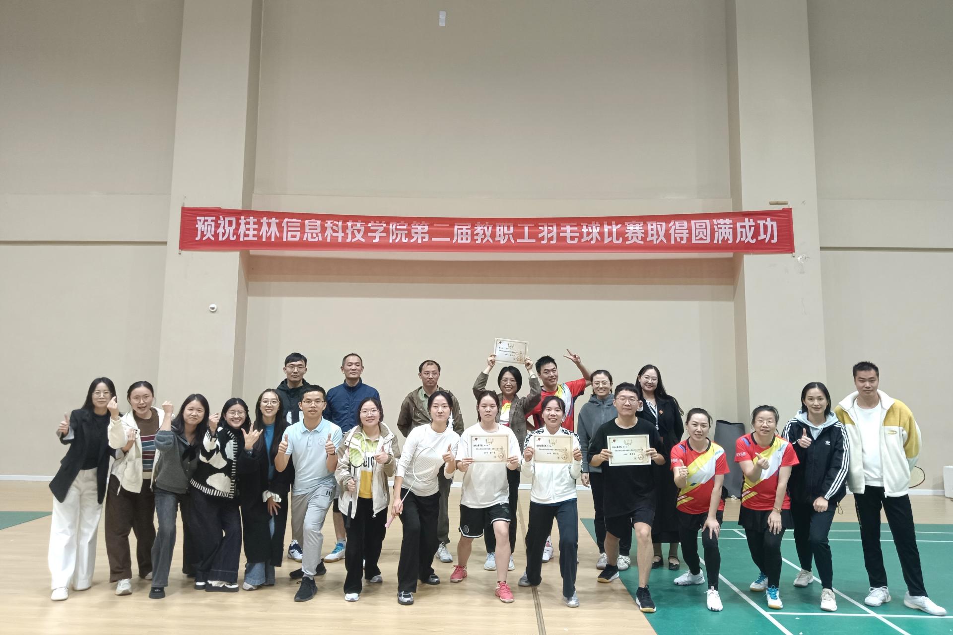 为认真贯彻落实《全民健身条例》,丰富教职工业余文体生活,增进教职工之间的友谊,增强团队凝聚力,桂林信息科技学院第二届教职工羽毛球比赛于11月11日至11月22日在行健楼举办,共12支分工会代表队参赛,本次比赛由学校工会主办,外贸与外语学院承办。