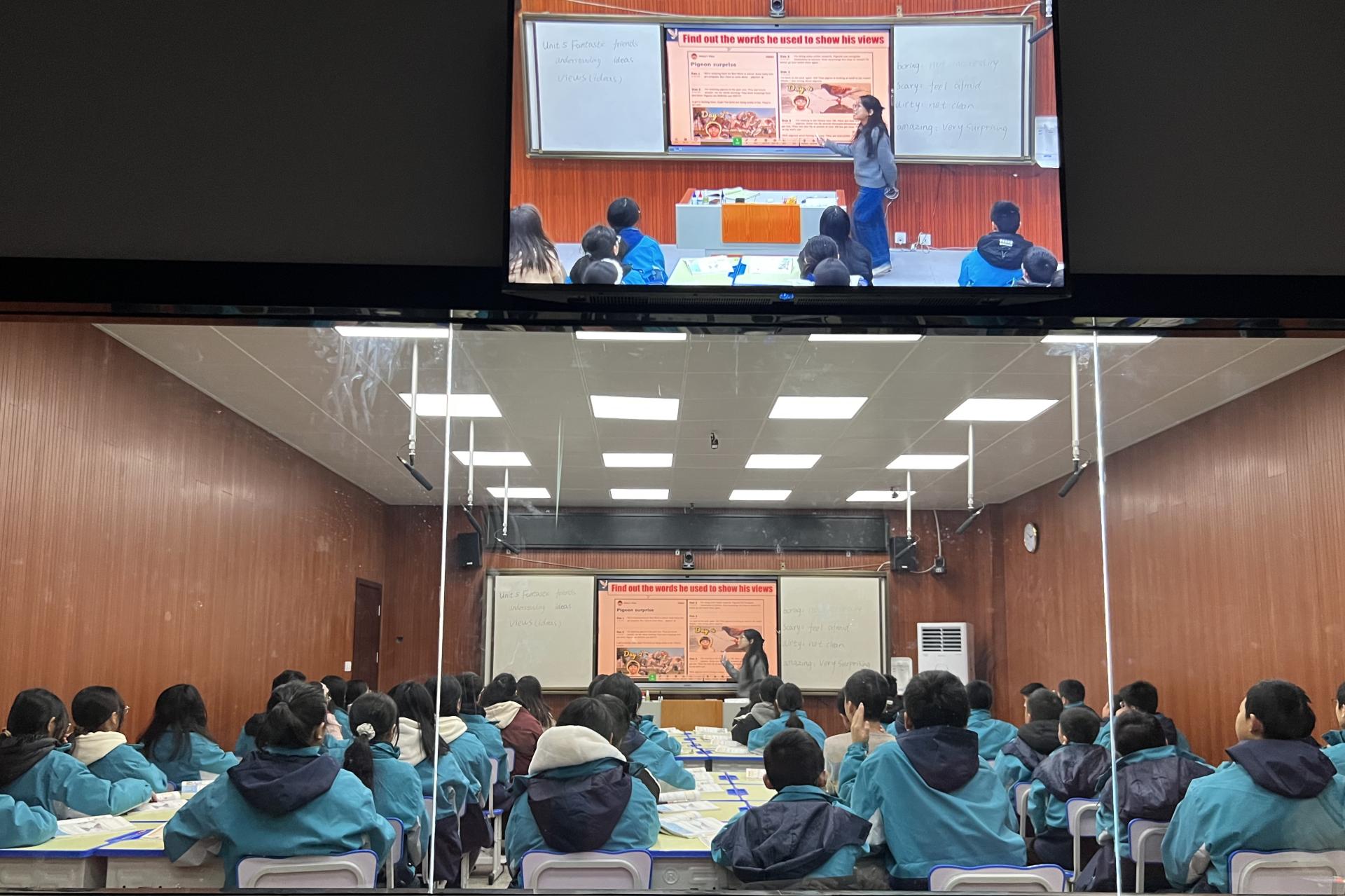 随后,苏建芳主任带领我校师生一行观摩2021级英语专业实习生代表龚宇晴同学的公开课。龚宇晴教态大方,表现自信,展现了扎实的专业知识基础和灵活的教学方法,听课学生积极参与课堂教学活动,取得了不错的教学效果。课后,苏主任对龚宇晴的课堂活动开展和师生互动予以表扬。赖安副院长和英语专业的教师们也从教案内容、教学过程、教学活动等方面对实习学生的课堂表现进行了专业点评并提出改进意见。