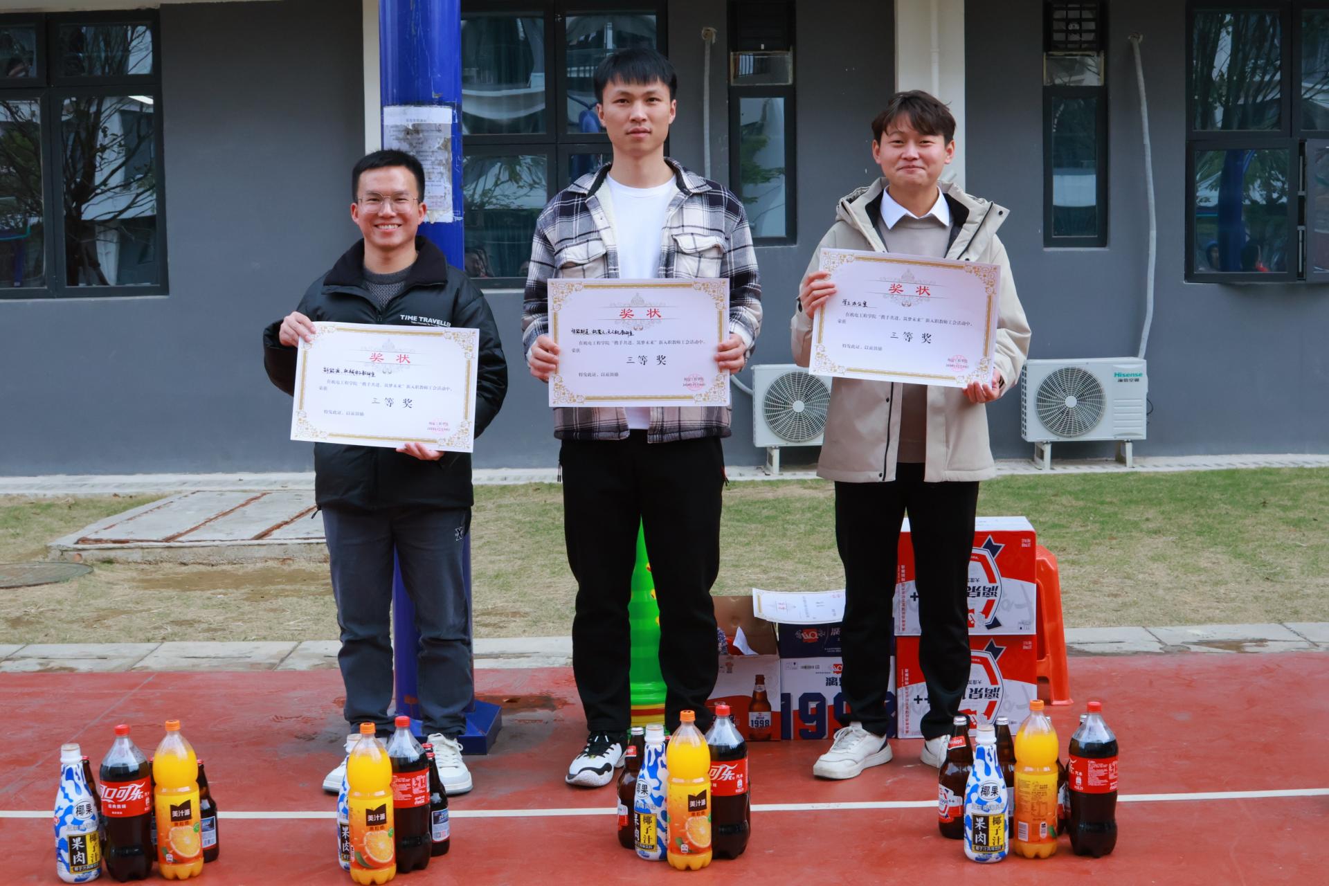 接下来的团队组建环节各教学教研室、学生工作处辅导员、机电工程学院办公室和机电分工会分别组成六支队伍。分别参与了旋风跑和心心相印比赛项目。经过激烈的比拼,学院领导依据比赛成绩为获奖队伍颁发了奖品。这些奖品不仅是对他们在比赛中优异表现的肯定,更是对他们在未来工作中保持拼搏精神的一种激励,希望他们能够将这种团结协作、勇于拼搏的精神延续到教育教学工作中。