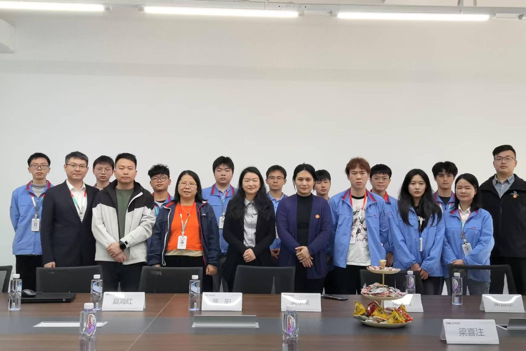 在走访新能源领域龙头企业亿纬锂能期间,学院一行实地参观了锂能研究院与自动化设备研发生产车间,详细了解行业前沿技术及岗位能力需求。随后与正在企业实习的十余名学生代表座谈,深入听取学生在岗位实践、生活保障等方面的反馈,并现场协调解决具体问题。会上,梁自珍对实习生的表现给予高度评价,勉励同学们珍惜实践机会,锤炼工匠精神,为今后高质量就业打下夯实基础。