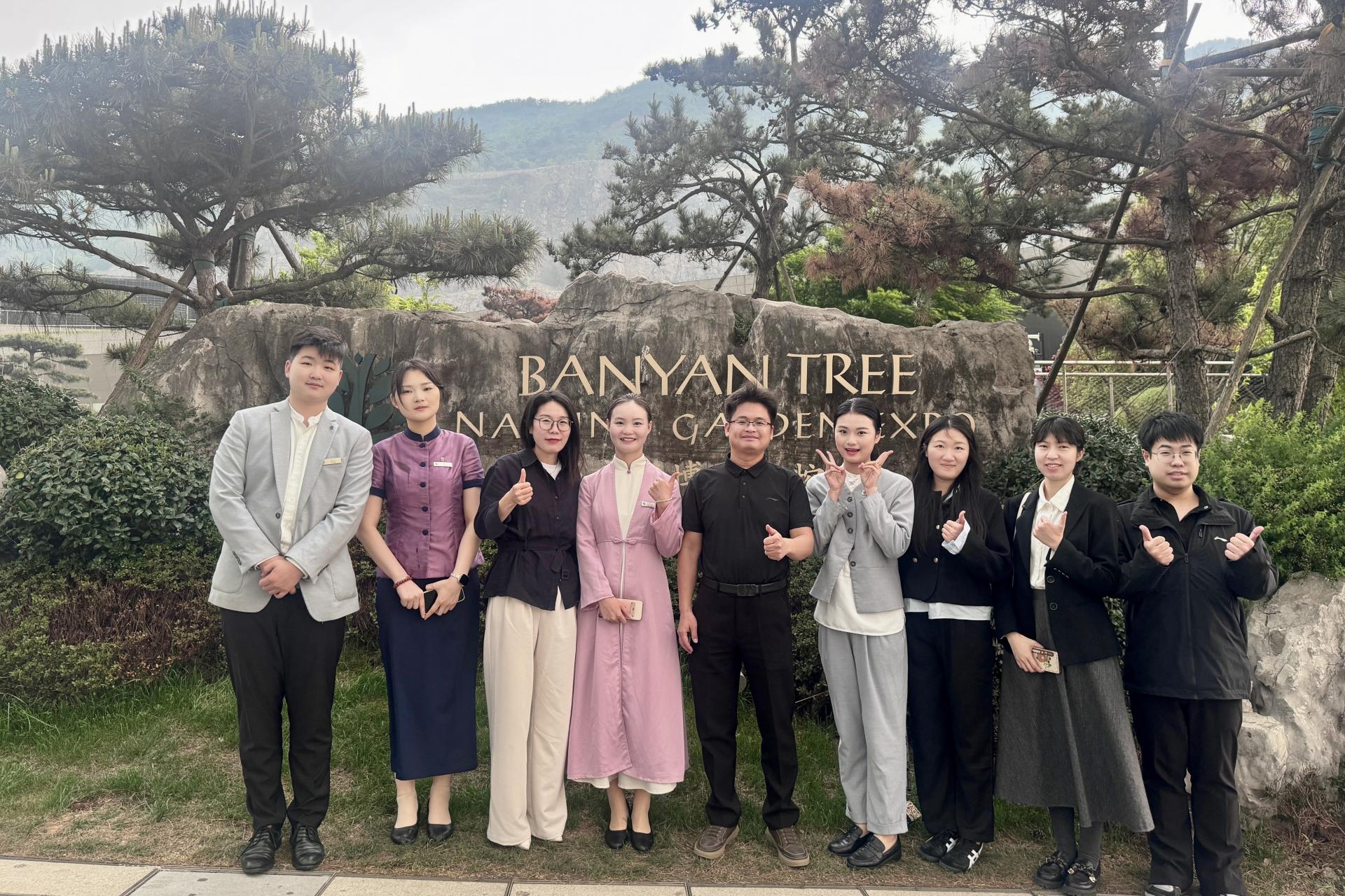 行程后半段,调研组赴悦榕集团旗下苏州和南京的酒店交流。在苏州,调研组考察了苏州狮山悦榕庄与悦椿酒店复合体的环境,与人力资源部负责人陈秋凤女士商讨落实第二届信科-悦榕集团人才定制班学生到苏州实习的工作;在南京,调研组与我校第一届悦榕人才培养定制班学生面对面交流,同学们分享了自己的工作情况,并对定制班模式表达了认可。目前,实习生已全部落实就业。此外,调研组与南京园博园悦榕庄人力资源总监张飞女士交流,落实第二届悦榕集团人才培养定制班学生到南京实习事宜。