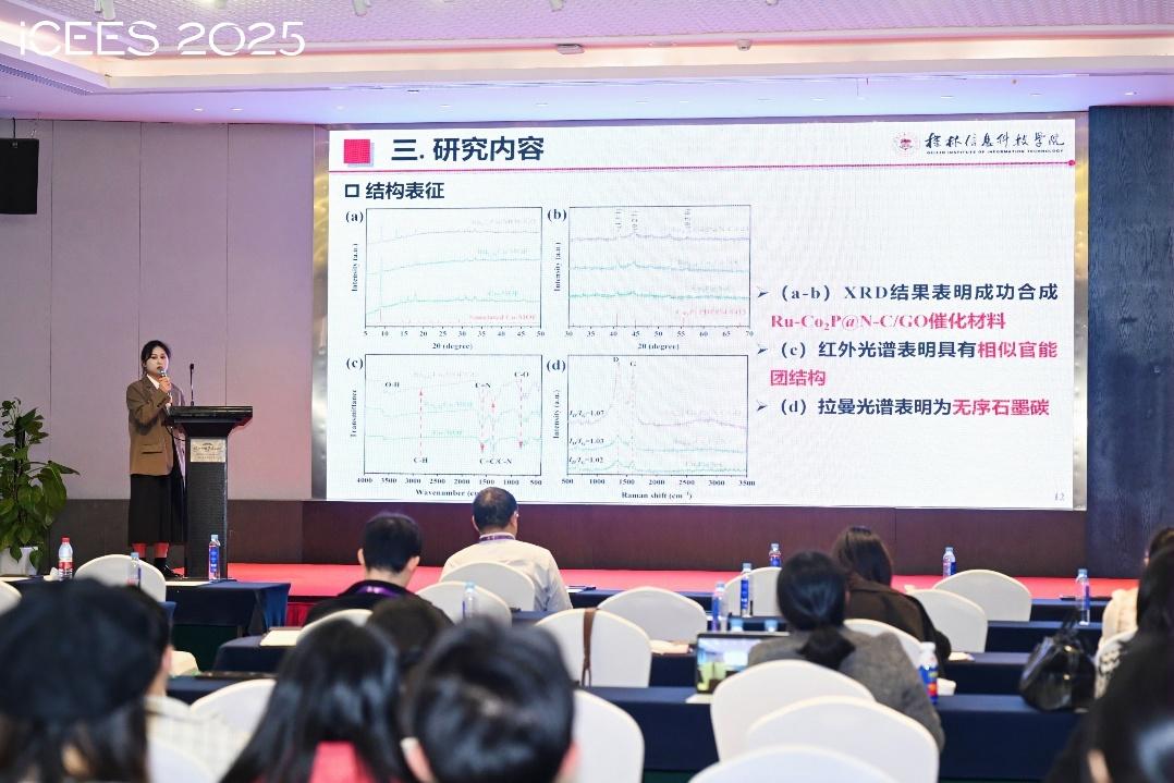 我校代表团在大会中表现亮眼:胡国文教授主持“电化学与催化”分论坛,凭借深厚的学术功底引导与会学者展开跨领域研讨,推动思想碰撞与技术交流;马伟民教授担任“金属电极材料”分论坛主持人,并作题为《高性能正极材料在热电池的应用》的报告,系统分享团队在热电池正极材料领域的突破性成果及产业化前景,引发参会专家热议;青年教师韦秋红、张文欣分别以《Ru基纳米材料的催化性能及应用研究》《MXene@聚合物纳米结构:构筑高稳定性宽温域锂离子电池》为题作报告,展示我校在纳米催化与复合电极设计领域的前沿探索,获同行高度认可。