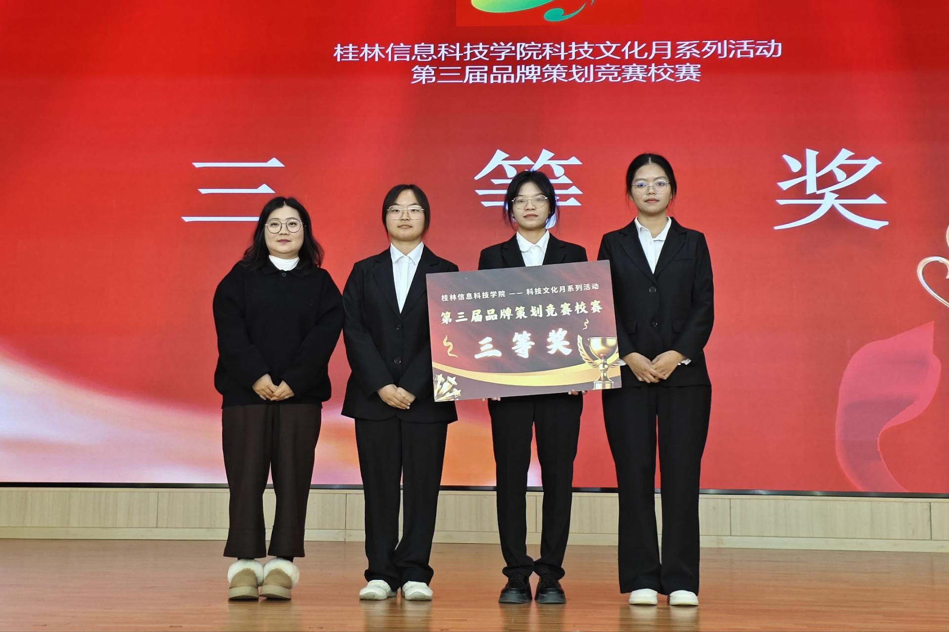 12月6日,学校科技文化月系列活动——桂林信息科技学院第三届品牌策划竞赛校赛暨2026年全国高校商业精英挑战赛品牌策划竞赛全国总决赛校内选拔赛在F107报告厅顺利举行。桂林旅游学院谢雨萍教授、外贸与外语学院酒店管理教研室杨永彪博士、酒店管理教研室主任黄艳老师、实践教研室主任农方老师担任本次大赛的评委,为赛事专业把关。