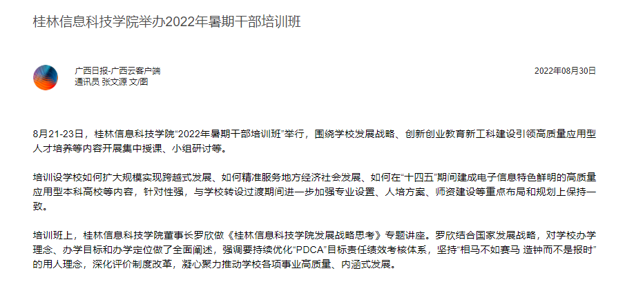 广西云客户端:桂林信息科技学院举办2022年暑期干部培训班