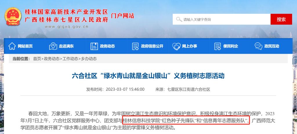 桂林市七星区人民政府网链接:http://www.glgxq.gov.cn/xinwenzhongxin/gzdt/xbdt/202303/t20230307_2459622.html