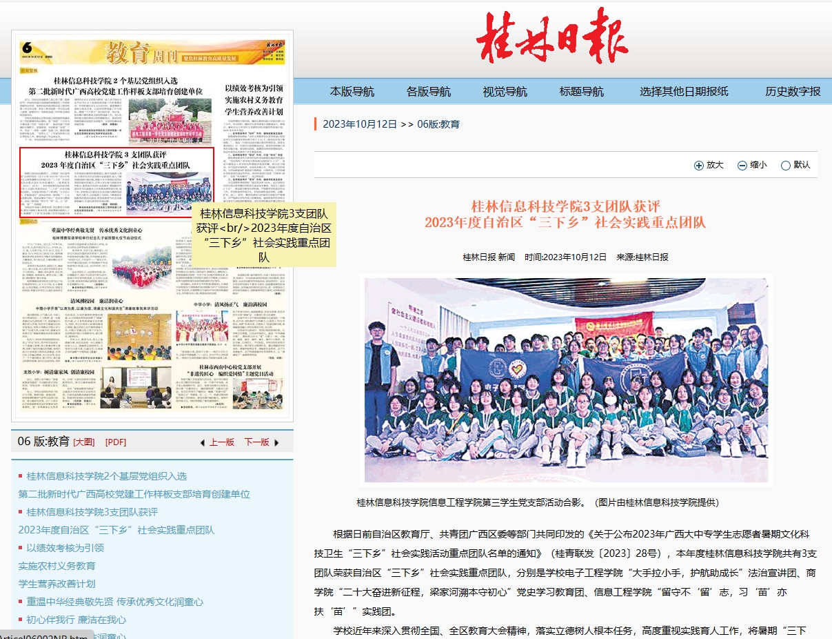 桂林日报:桂林信息科技学院3支团队获评2023年度自治区“三下乡”社会实践重点团队