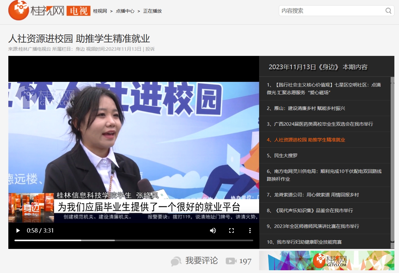桂林电视台链接:人社资源进校园 助推学生精准就业,桂林电视点播,桂视网,桂林视频新闻门户网站 (gltvs.com)