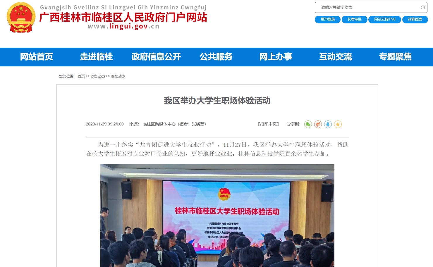 临桂区人民政府门户网链接:https://lingui.gov.cn/zwdt/lgdt/202311/t20231129_2611887.html