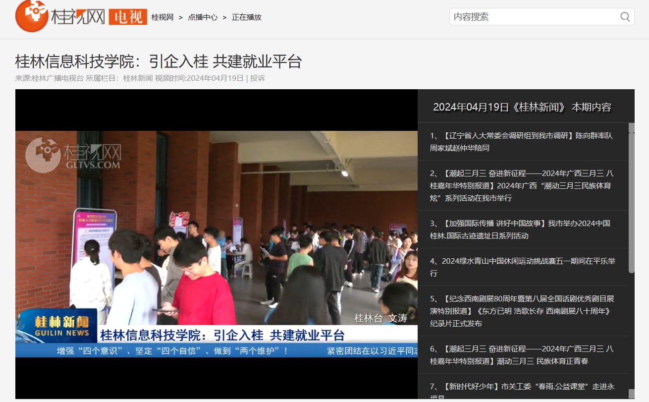 桂林电视台链接:桂林信息科技学院:引企入桂 共建就业平台,桂林电视点播,桂视网,桂林视频新闻门户网站 (gltvs.com)