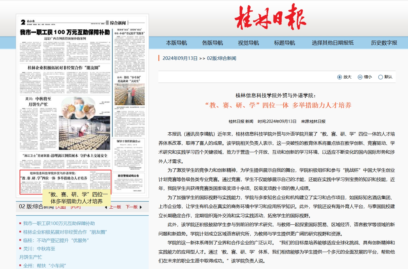 桂林日报链接:桂林日报 -02版:综合新闻-2024年09月13日 (guilinlife.com)