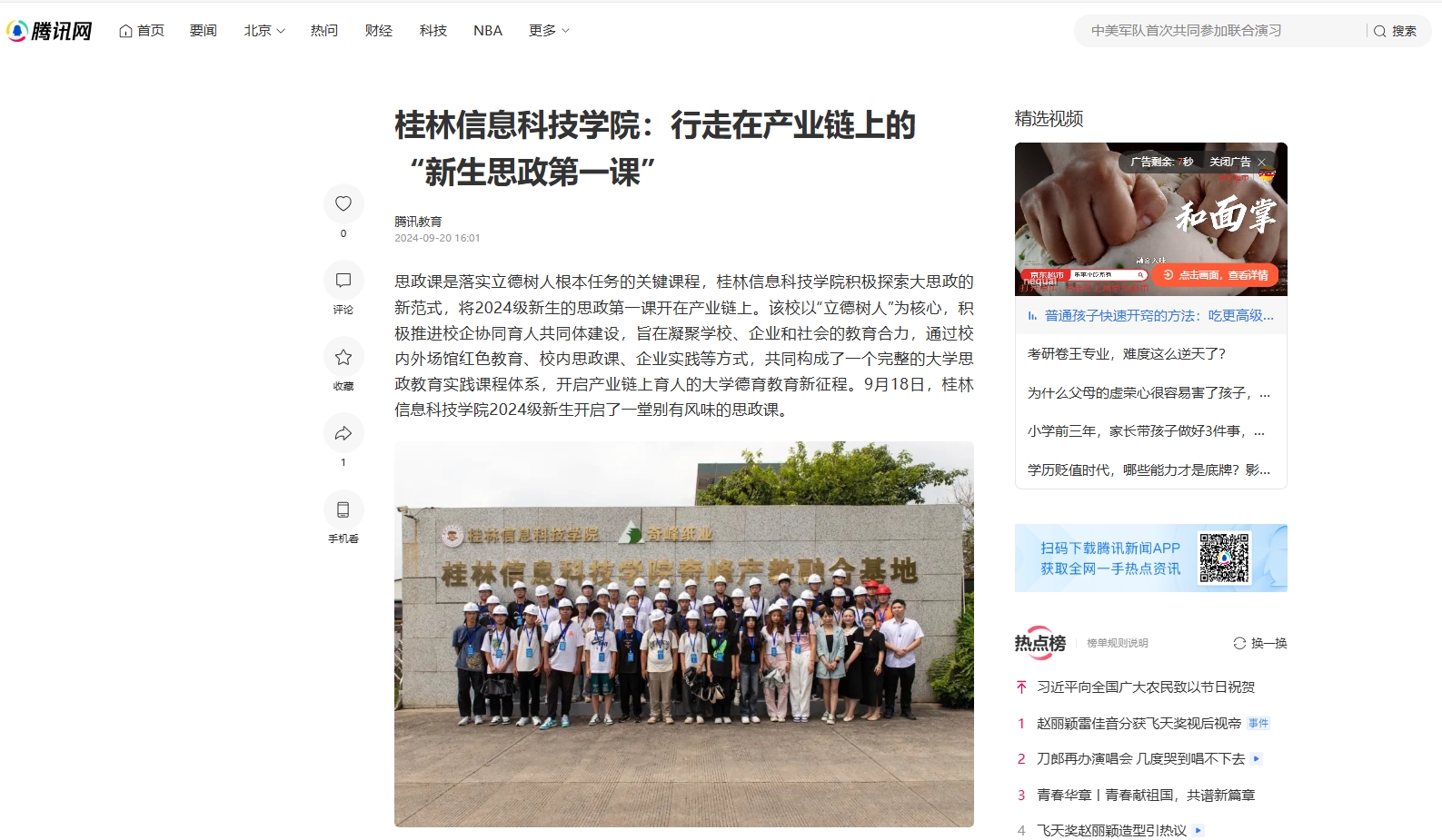 腾讯新闻链接:桂林信息科技学院:行走在产业链上的“新生思政第一课”_腾讯新闻 (qq.com)