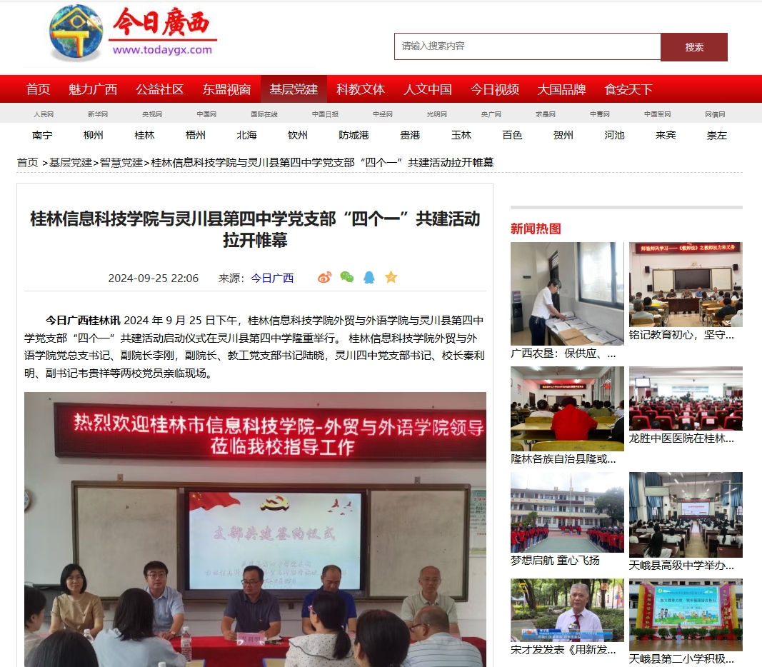 今日广西链接:桂林信息科技学院与灵川县第四中学党支部“四个一”共建活动拉开帷幕_基层党建_智慧党建_今日广西 (todaygx.com)