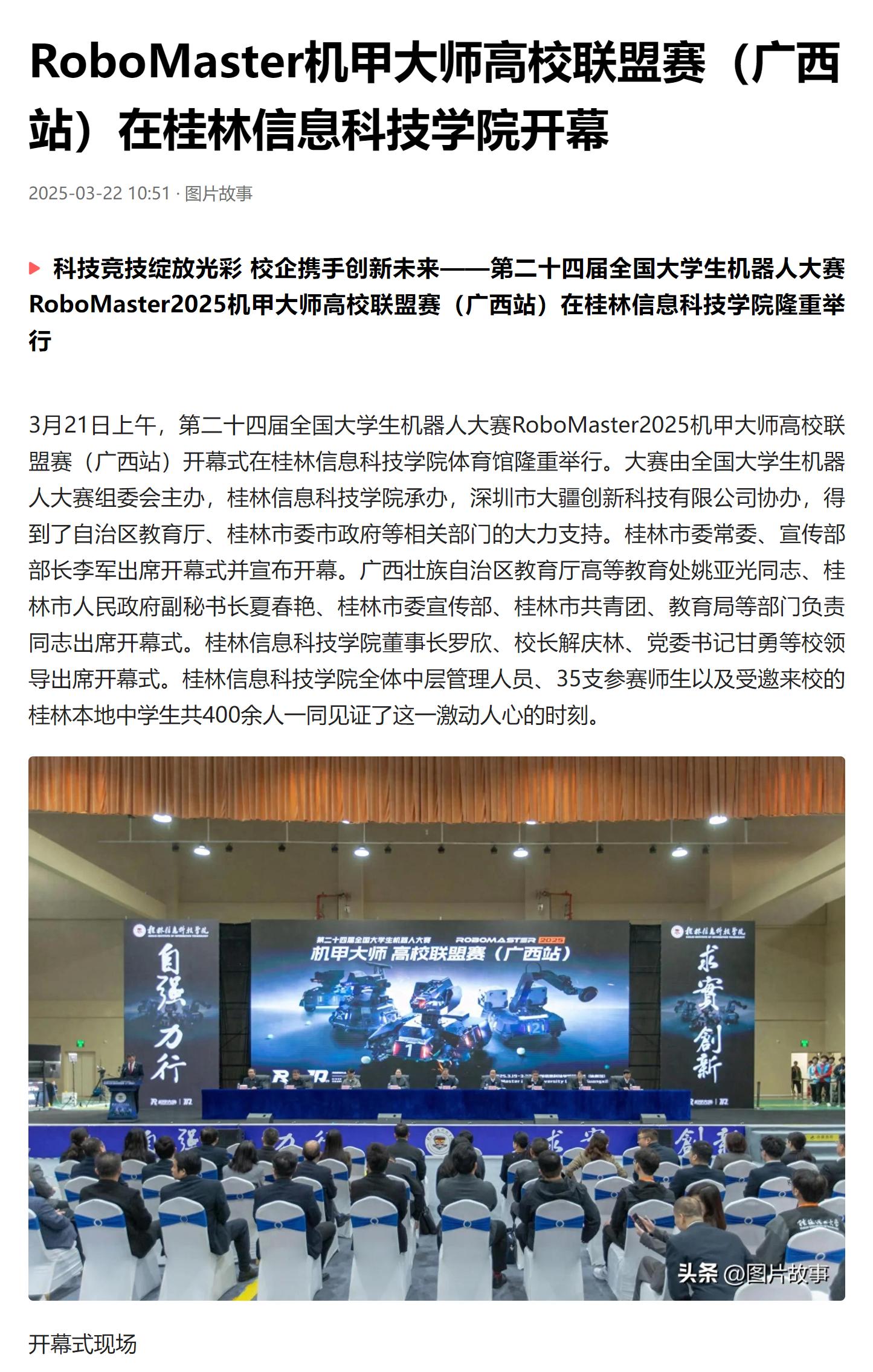 今日头条链接:RoboMaster机甲大师高校联盟赛(广西站)在桂林信息科技学院开幕