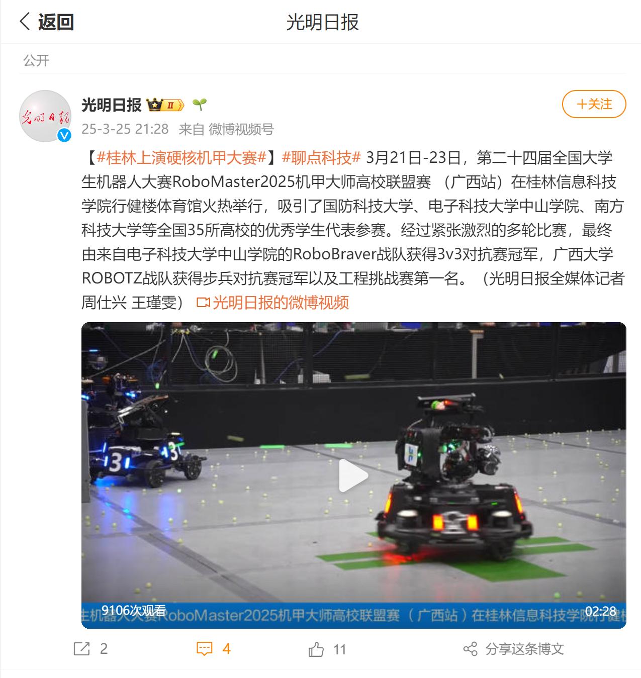 光明日报微博视频号链接:桂林上演硬核机甲大赛