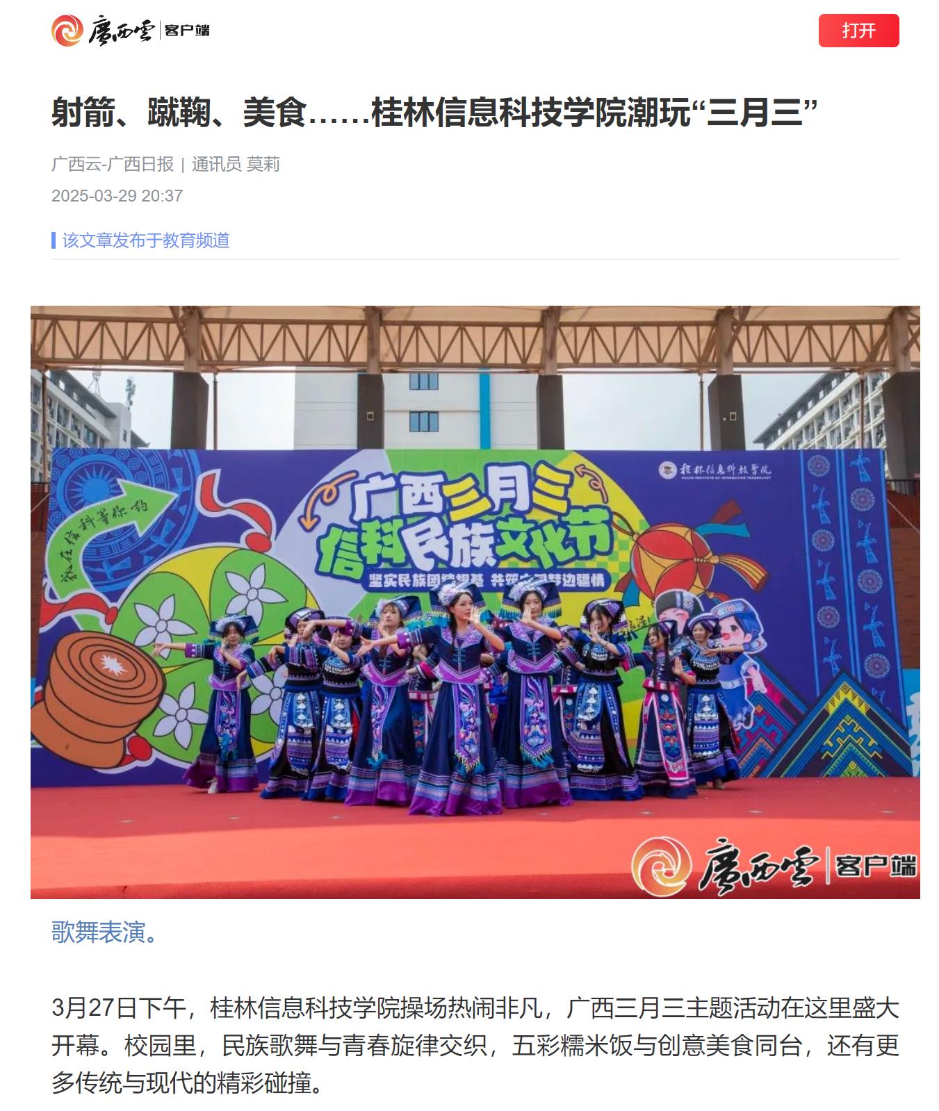 广西云-广西日报链接:射箭、蹴鞠、美食……桂林信息科技学院潮玩“三月三”