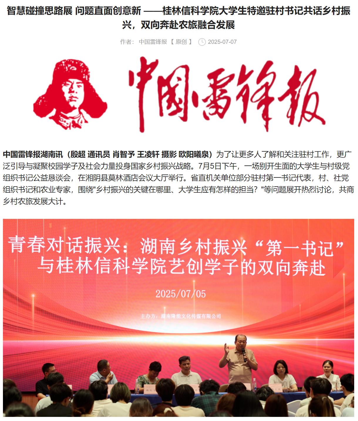 中国雷锋报:智慧碰撞思路展 问题直面创意新 ——桂林信科学院大学生特邀驻村书记共话乡村振兴,双向奔赴农旅融合发展