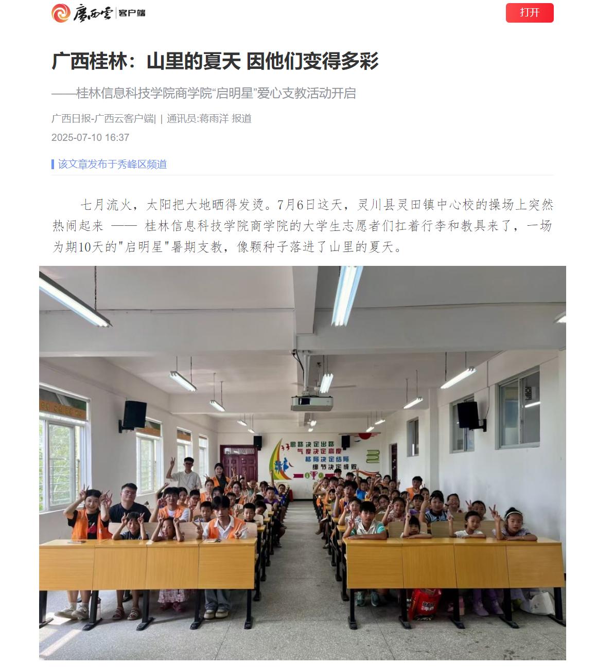 广西云链接:广西桂林:山里的夏天 因他们变得多彩——桂林信息科技学院商学院“启明星”爱心支教活动开启