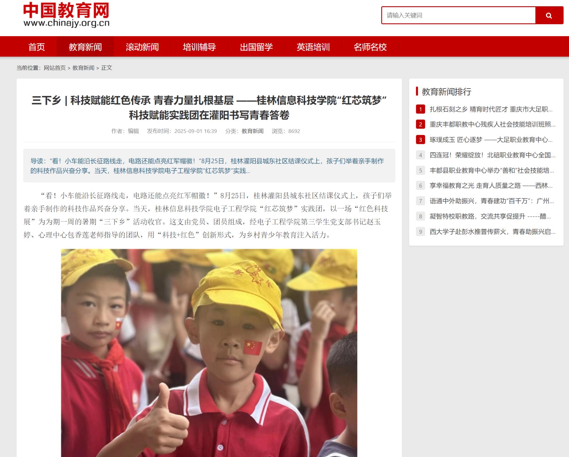 中国教育网:三下乡 | 科技赋能红色传承 青春力量扎根基层 ——桂林信息科技学院“红芯筑梦”科技赋能实践团在灌阳书写青春答卷