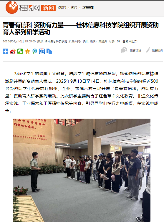 桂视网链接:青春有信科 资助有力量——桂林信息科技学院组织开展资助育人系列研学活动