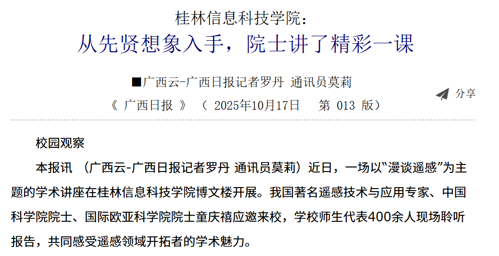 广西日报:桂林信息科技学院: 从先贤想象入手,院士讲了精彩一课