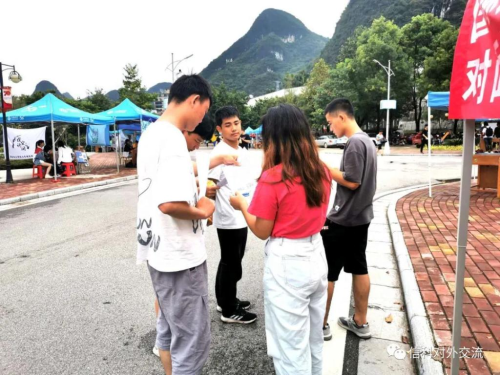 经过一番特色奇招后,小萌新们陆续来到摊位,值班的人员一边递上宣传单一边为他们讲解,三两个小伙伴你一唱我一喝,为不了解协会的新生们介绍协会,同时为他们讲解了协会五个部门的职能与特色。听完工作人员的一番讲解后,新生们纷纷接过报名表并对协会表露出极大的兴趣。新生们怀里揣着报名表向国交的小伙伴们say goodbye并表示明天前来交表噢!