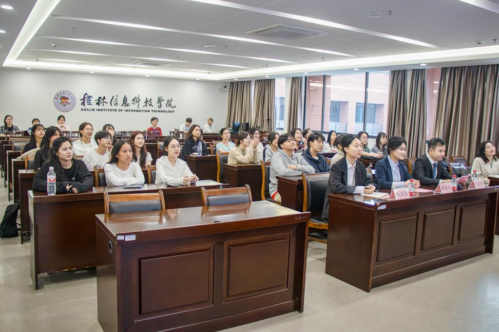 开班仪式上,学校副校长刘跃峰代表桂林信息科技学院全校师生,向远道而来的泰国各位老师和同学表示热烈欢迎。刘跃峰副校长在致辞中首先介绍了我校临桂校区的基本情况、学校专业设置、办学特色等信息。他指出,我校积极响应中国“一带一路”倡议,在学生交流、教师互访、学术交流等方面开展了诸多探索,多年来与泰国的大学、中学建立了深厚的合作基础。最后,刘跃峰副校长向此次来访交流学习的泰国学生表达了期许与祝愿。