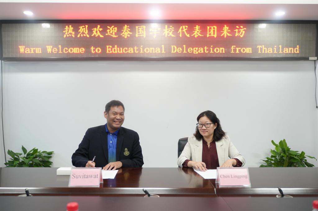 会谈结束后,陈玲萍副校长代表桂林信息科技学院与素拉萨蒙蒂学校、玛哈普塔拉寺女子学校、拉差达预科教育发展学校、威鲁瓦纳兰寺学校和素丽约泰女子高中签署教育合作协议。