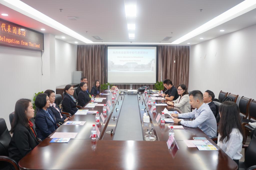 10月30日早上,来自泰国素拉萨蒙蒂学校(Surasakmontree School)、玛哈普塔拉寺女子学校(Satree Wat Mahapruttaram Girls’School)、拉差达预科教育发展学校(Triamudomsuksapattanakarn Ratchada School)、威鲁瓦纳兰寺学校(Watwaruwanaram School)、素丽约泰女子高中(Satri Si Suriyothai School)和东南亚大学(Southeast Asia University)6所学校的校长和教师代表到我校交流访问。副校长陈玲萍、国际交流与合作处处长王家年接待了来访客人。