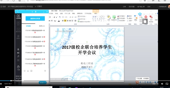 为推进校企联合培养项目的管理,机电工程系于3月16日利用腾讯课堂开展2017级校企联合培养学生线上会议,全体2017级校企联合培养学生参加,会议由辅导员陈筱婕老师主持。