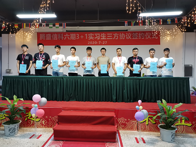 2020年7月27日下午,深圳市腾盛精密装备股份有限公司与桂林电子科技大学信息科技学院2017级机电工程系14名学子签订“腾盛信科六期3+1校企联合培养三方协议”,完成签约仪式。