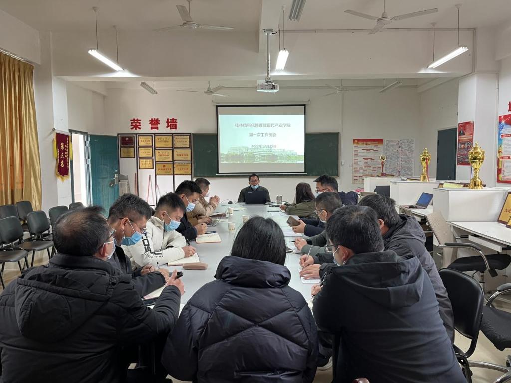 为进一步加强校企合作、深化产教融合,深入贯彻“智能装备技术+行业企业”指导思想,12月15日中午,桂林信科亿纬锂能现代产业学院于11311会议室召开第一次工作例会,会议由机电工程学院院长刘跃峰主持,教务科技处处长陈玲萍、机电工程学院党总支书记黄娟、现代产业学院教学与管理团队委员会成员参加本次会议。