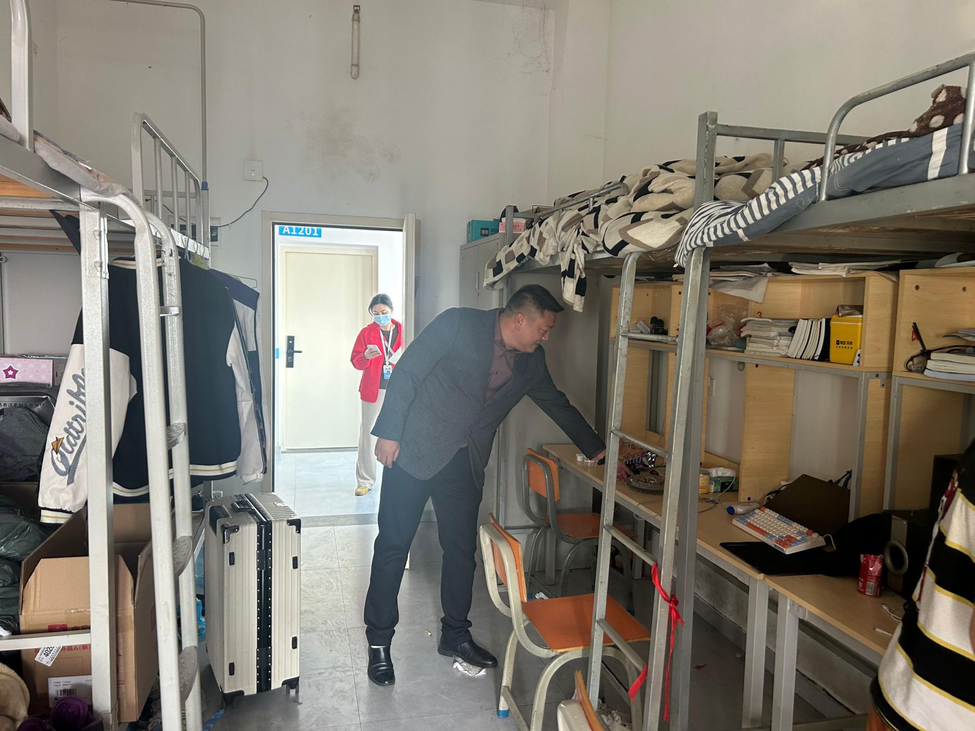 排查过程中,排查团队聚焦宿舍安全与卫生核心要点开展全面检查。安全方面,重点排查大功率电器违规使用、私拉乱接电线等突出安全隐患,对排查发现的问题逐一记录在册,现场督促学生立即整改;卫生方面,细致评估各宿舍整洁程度、物品摆放秩序及日常通风情况,引导学生养成良好生活习惯。同时,排查人员向学生详细讲解消防安全知识与用电规范,强化其 “安全第一” 的防范意识;在面对面交流中,主动倾听学生日常需求与意见建议,及时协调解决宿舍生活中的实际问题。