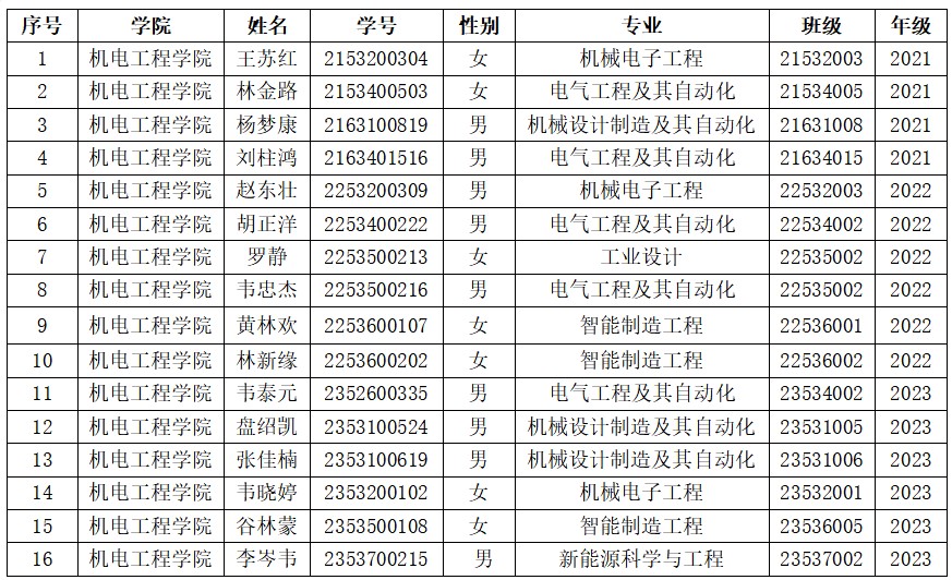 上一条:关于机电工程学院2023-2024学年“三好学生、三好学生标兵”、“优秀学生干部”拟推荐校级学生名单的公示