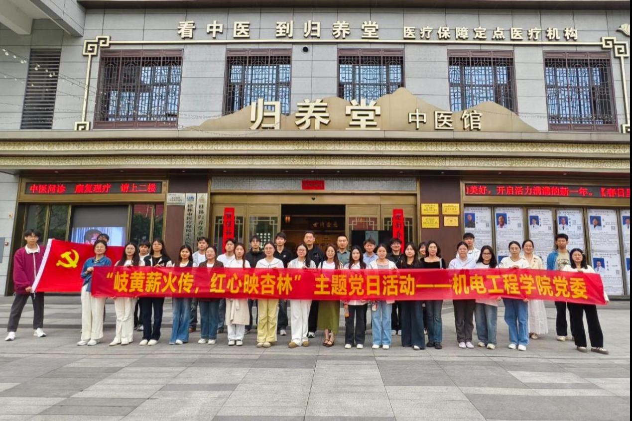 为深化党员对中华优秀传统文化的认同感,增强文化传播责任感,4月25日,机电工程学院第一学生党支部组织开展“岐黄薪火传,红心映杏林”主题党日活动。30余名党员走进广西一方天江制药厂区与归养堂国医馆,通过“实践体验+文化浸润”的沉浸式学习,在传承与创新中感悟中医药文化魅力。