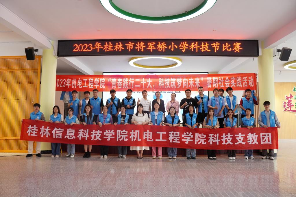 为贯彻落实党的二十大精神,发动青年大学生了解认知和积极助力乡村教育的发展,培养学生的创新精神和实践能力,激发少年儿童从小爱科学、学科学、用科学的兴趣。近日,机电工程学院由胡平华、张宇航等指导老师及学生代表组成的“机电工程学院科技支教团”赴桂林将军桥小学开展“青春践行二十大,科技筑梦向未来”社会实践活动。