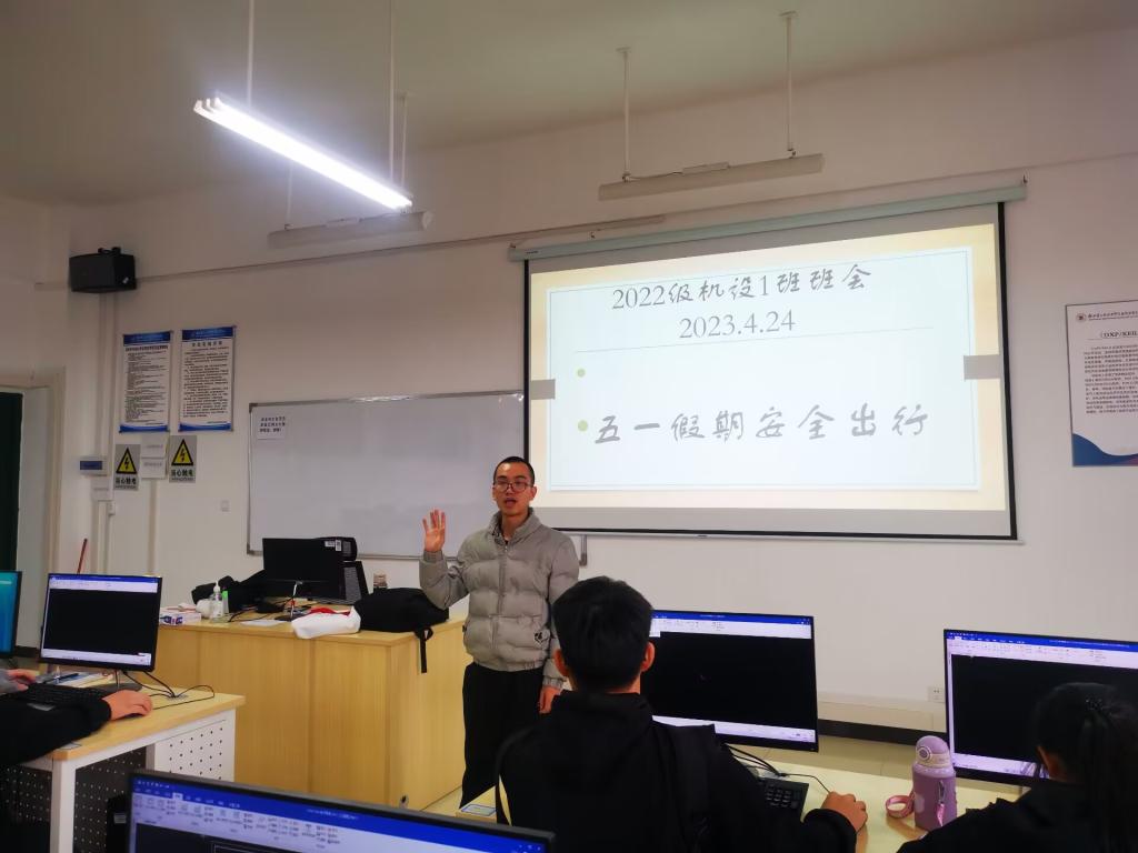 4月24日上午,2022级机设1班在52405开展了五一假期安全主题班会。2022级机械设计及其自动化专业1班班主任梁火昌和全班学生参加了本次会议。