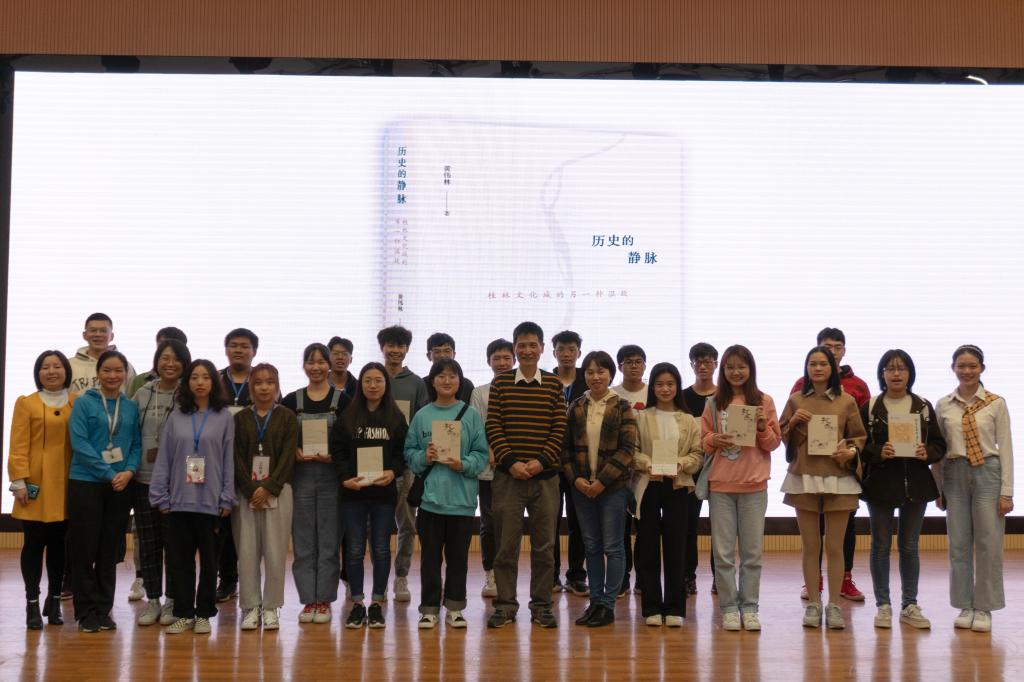 活动期间,开展了师生互动环节,现场气氛热烈,效果良好,讲学结束后,同学还意犹未尽,纷纷表示受益匪浅,让自己更深刻地了解了桂林这座美丽的城市,更加热爱了桂林这个美丽的第二故乡。据悉,第二场讲学《浩歌声里请长缨(广西抗战文化纪事)》将于10月28日开启。