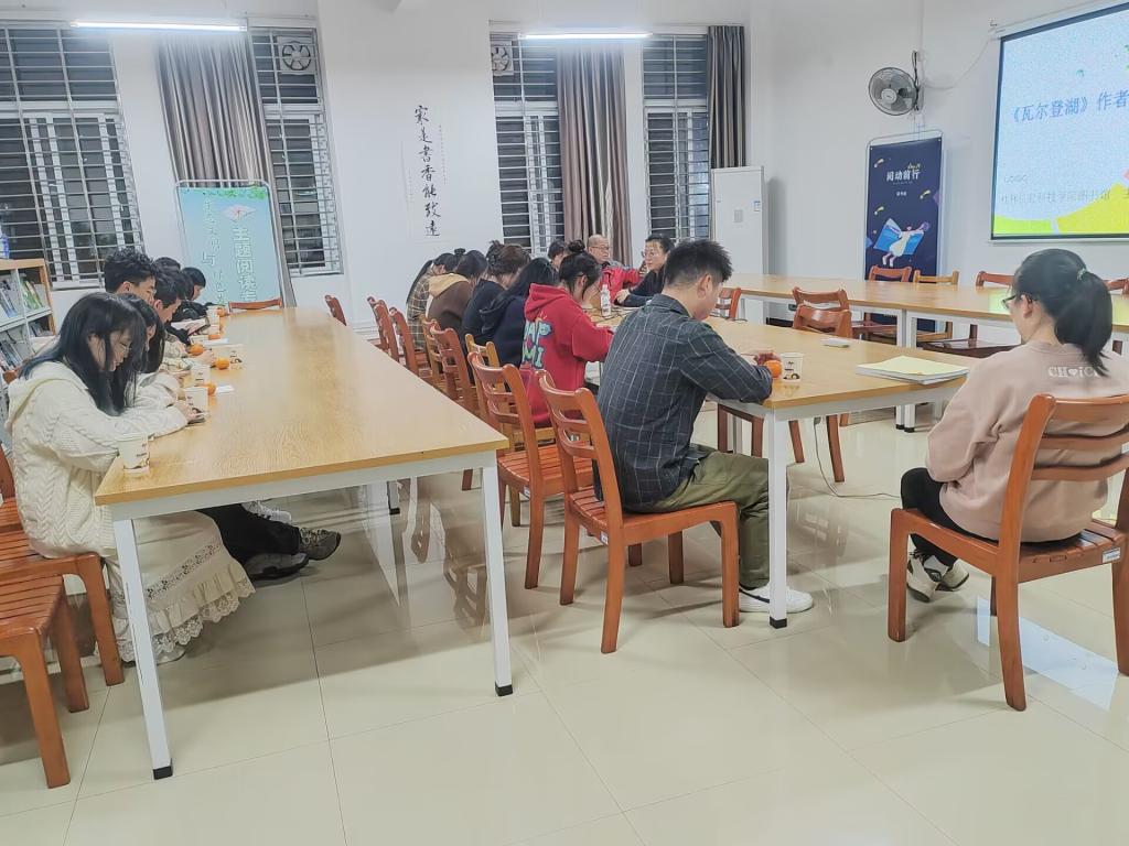 本期读书会分享的是美国作家亨利·戴维·梭罗创作的散文集《瓦尔登湖》。由图书馆王凌燕老师、肖莹莹老师以及商学院谢红梅老师共同带领二十几名学生共同阅读分享,分享书中经典场景及段落,如读书、来客、湖泊、春天等章节、分享笔者在瓦尔登湖听风、凿冰、鸟鸣、落叶的田园隐居生活的感受,特别对笔者在书中写道:“书籍是最珍贵的财富,是世世代代和一切国家最好的继承,我们必须将最清醒的时光贡献给它们,才是阅读。”引起强烈共鸣,纷纷表示赞同。