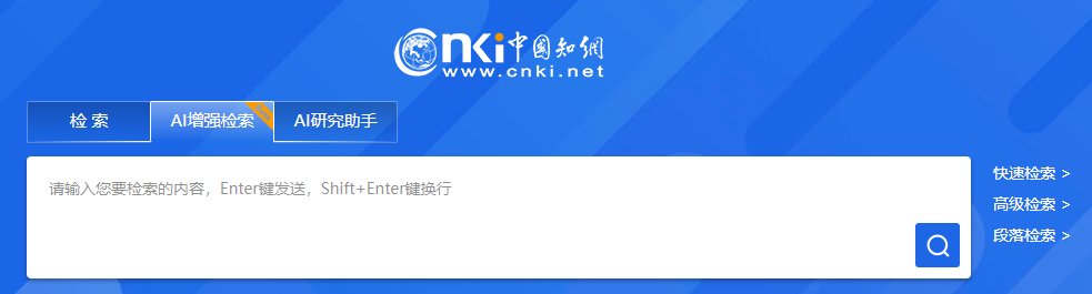 在校园网IP范围内,进入知网首页,点击“AI增强检索”选项卡,输入自然语言即可进行检索。