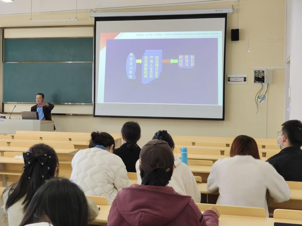 涂教授围绕“在贯彻落实‘六个下功夫’上下真功夫”为主题,从政治主导、品德支撑、身心养护、知识运气、素质为要五个方面,共话青年思政教师职业发展、学生工作方法、立德树人根本任务落实、青年教师的幸福那些事儿等内容。