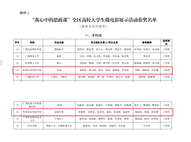 据悉,本次活动自今年6月启动以来,经各高校推荐,教育厅组织专家评审,认定全区高校大学生讲思政课公开课展示活动优秀作品108件,其中,本科组一等奖7件、二等奖15件、三等奖31件;高职组一等奖7件、二等奖15件、三等奖33件。认定“我心中的思政课”全区高校大学生微电影展示活动优秀作品103部,其中,本科组一等奖6部、二等奖11部、三等奖37部;高职组一等奖6部、二等奖10部、三等奖33部