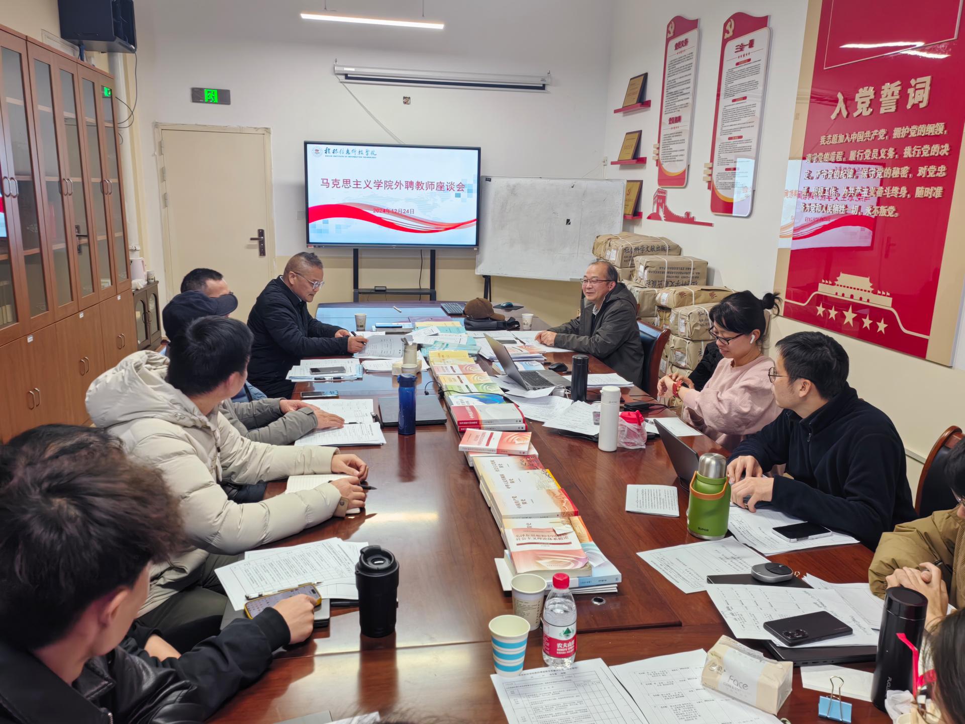为进一步规范教学管理,提升教学质量,12月24日,马克思主义学院在德远楼E526会议室召开了外聘教师座谈会,会议由邱启照院长主持,部分外聘教师代表参加了此次会议。