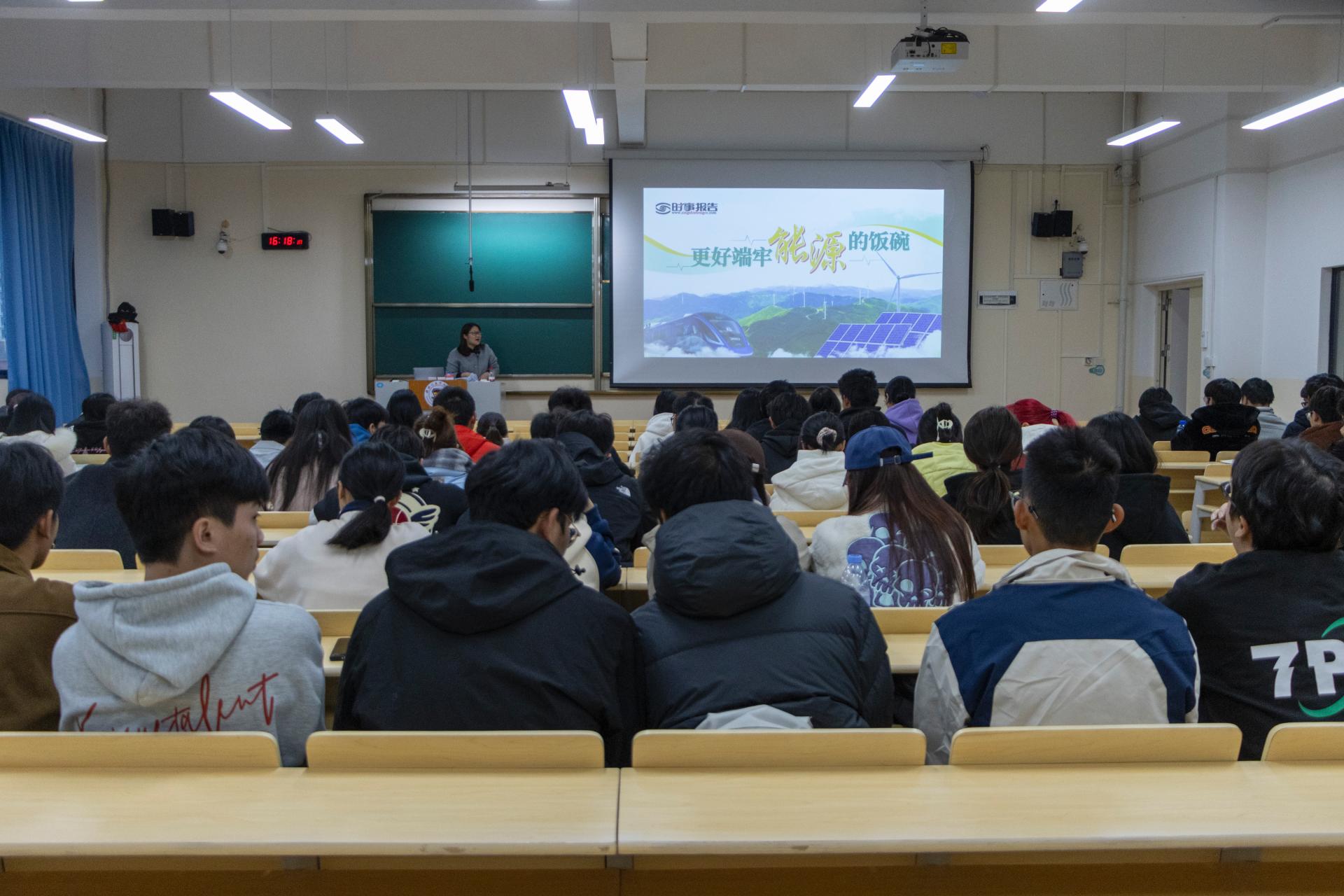 陈玲萍副校长以“更好端牢能源的饭碗”为主题,为信息工程学院的大一学生讲授了能源革命的全球浪潮、我国能源转型的路径以及新能源发展的重要意义,分析了当前国际能源形势的变化,强调了同学们作为青年一代的大学生们在推动能源转型和实现可持续发展方面的关键角色,鼓励同学们要关注能源科技的前沿,积极投身于能源领域的创新与实践,努力为国家的能源安全贡献力量。