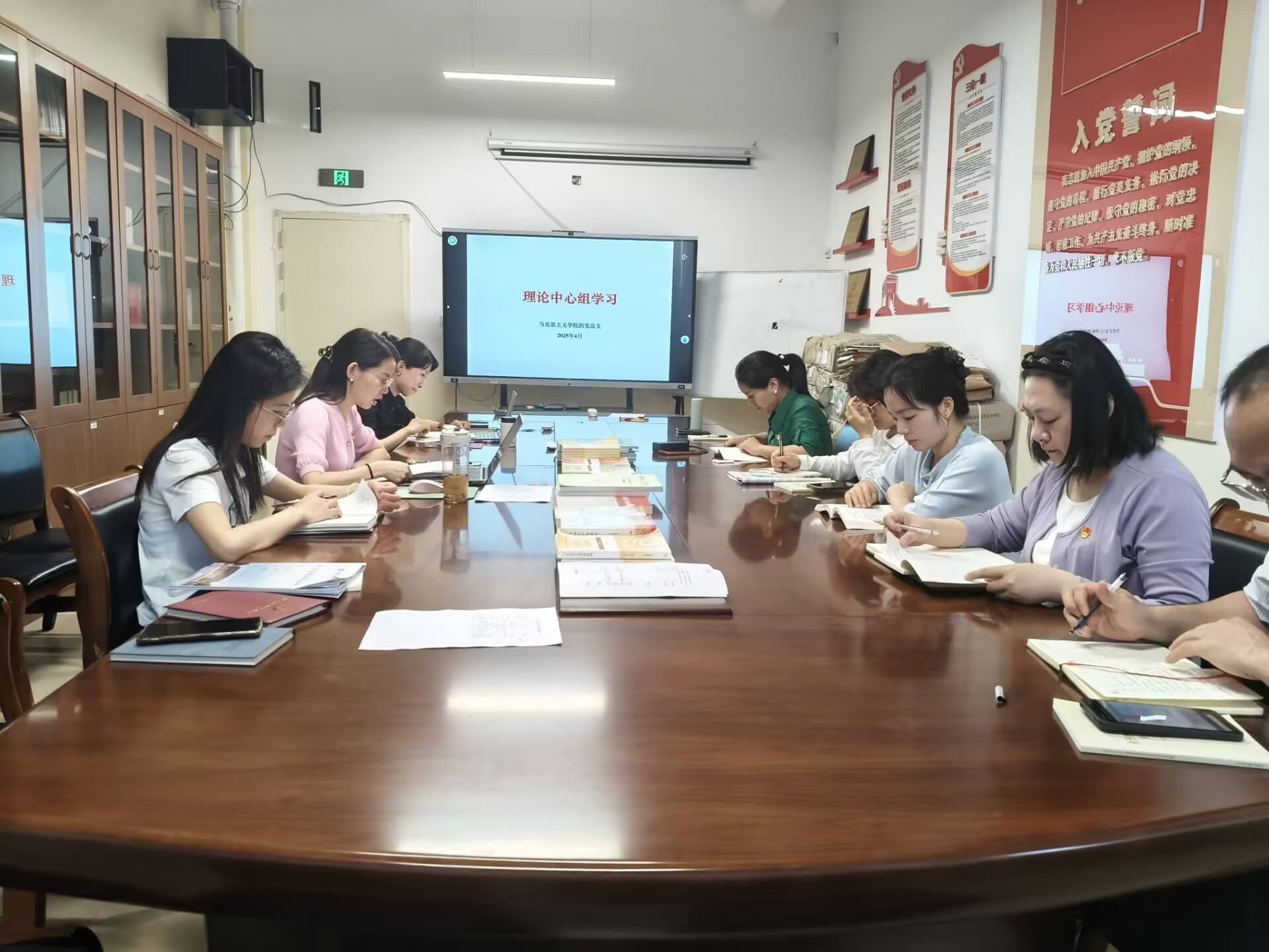 5月6日上午,马克思主义学院党总支理论学习中心组在E教526会议室召开2025年第二次集中学习(扩大)会议,会议由党总支书记赵奕主持,理论学习中心组成员及各党支部书记、组织员、宣传员参加会议。